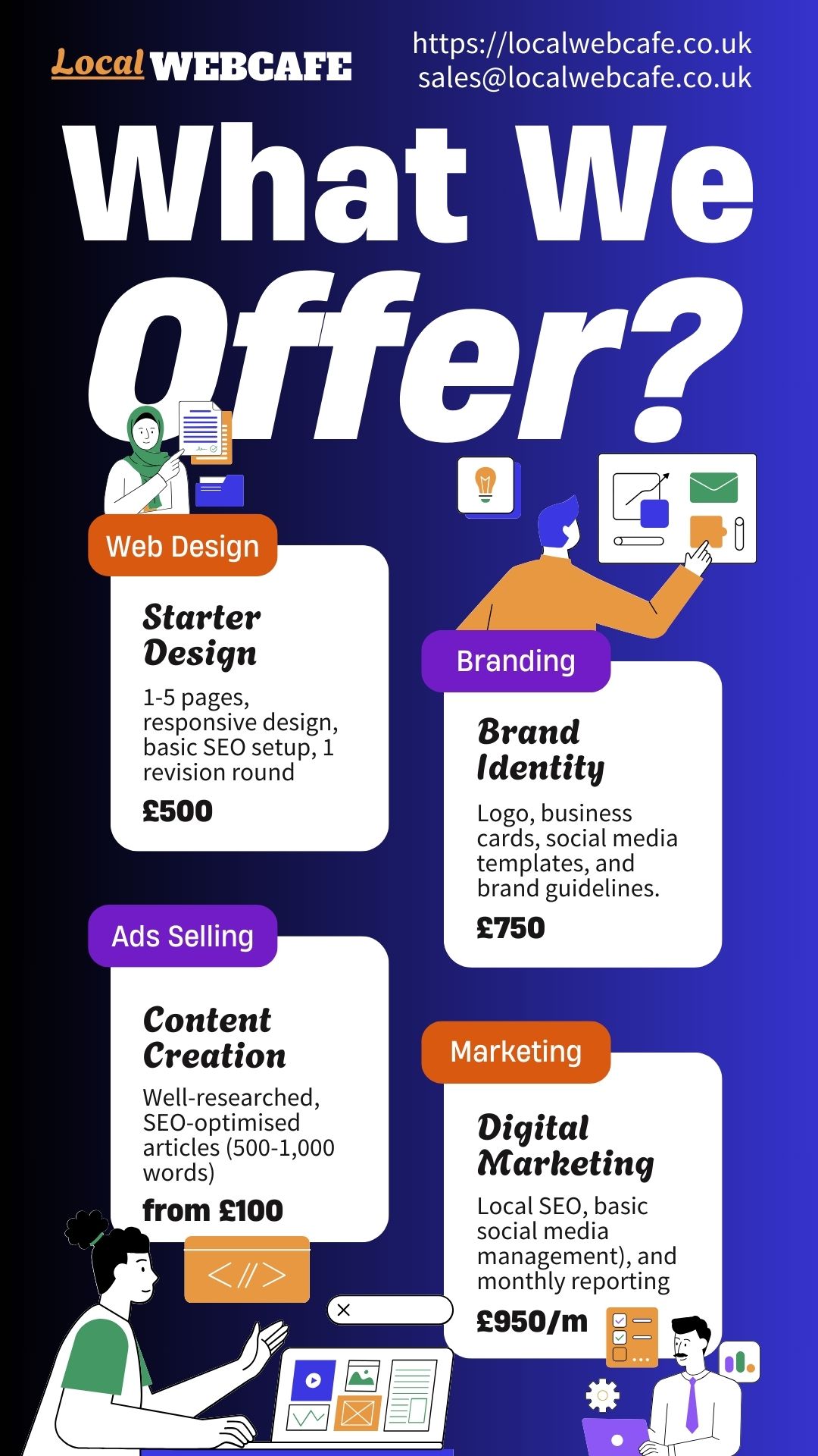 Local Webcafe is your UK-based, all-in-one digital marketing service provider. From domain name registration and web hosting to web design, SEO management, and PPC management, we offer reliable, secure, and affordable services to help businesses and individuals establish their online presence. Enjoy competitive pricing, robust infrastructure, SSL certificates, and 24/7 support. Our user-friendly platform simplifies domain management and hosting setup. Whether launching a new site or transferring an existing one, Local Webcafe provides the tools and support you need to succeed online. Visit our website below to start your online journey today!